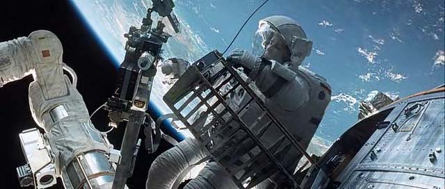 Шаттл уничтожен, а Стоун и Ковальски остаются совершенно одни; они находятся в связке друг с другом, и все, что они могут, — это двигаться по орбите в абсолютно черном пространстве без всякой связи с Землей и какой-либо надежды на спасение.